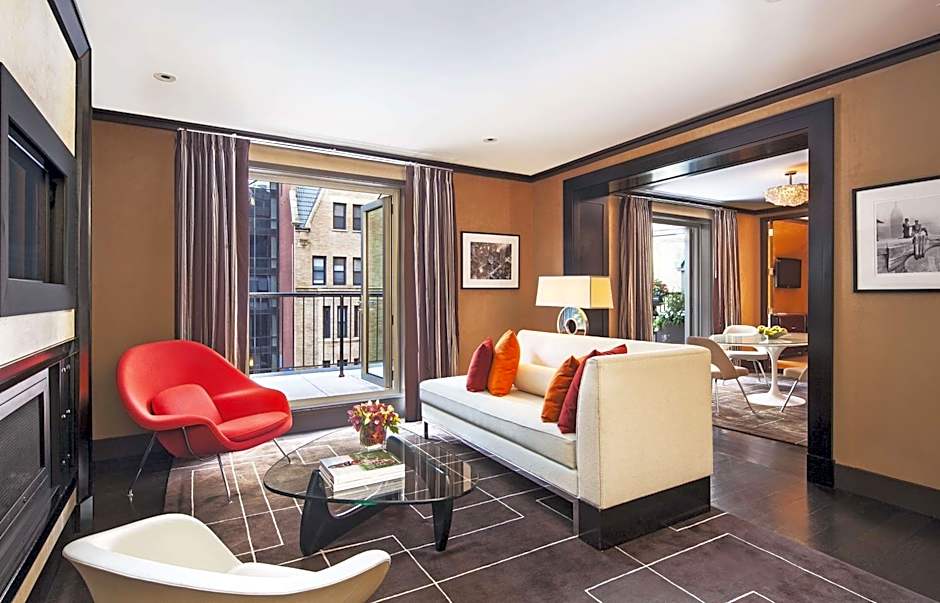 Indulge in luxury and relaxation in our One-Bedroom Producer Penthouse Suite, boasting 700 sqft of space with a stunning city view. Enjoy the comforts of a private bathroom, terrace, minibar, and flat-screen TV, creating the perfect retreat for 3 adults and 2 children.